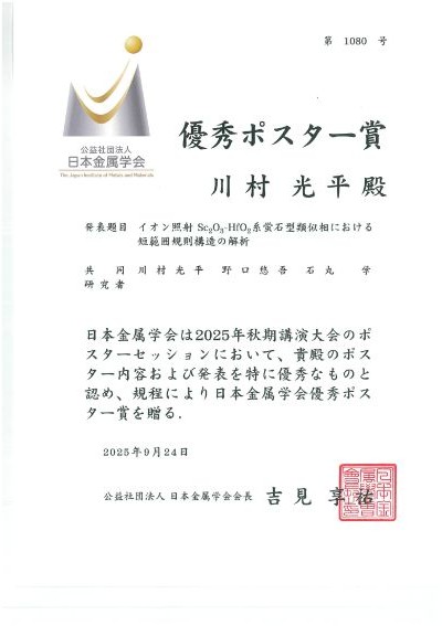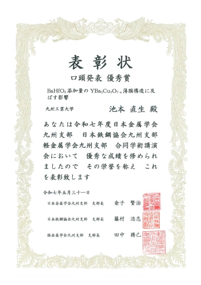 日本金属学会・日本鉄鋼協会・軽金属学会九州支部平成29年度合同学術講演会(2017.6.10) - 優秀ポスター賞